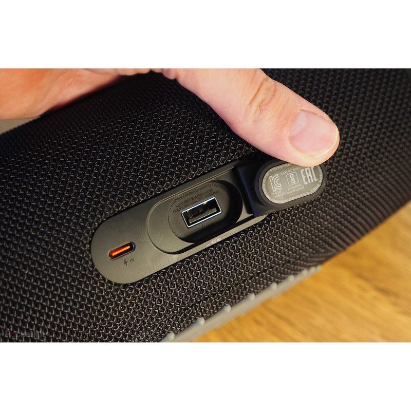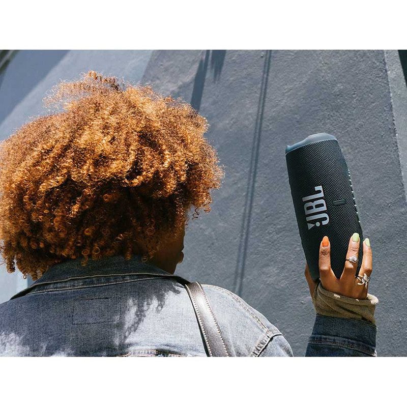 Charge 5 با طراحی استوانه‌ای ارتقا یافته، بدنه فابریک مقاوم، و ضربه‌گیرهای سیلیکونی عرضه می‌شود. لوگوی بزرگ سه‌بعدی JBL جلوه‌ای مدرن به اسپیکر داده و بدنه دارای گواهی IP67 است؛ یعنی کاملاً ضدآب، ضدگرد و حتی قابل شستشو.